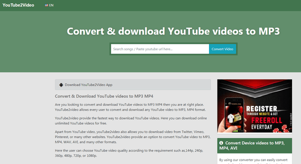 Convert video files or videos from youtube, vimeo, dailymotion to many formats in hd quality.
